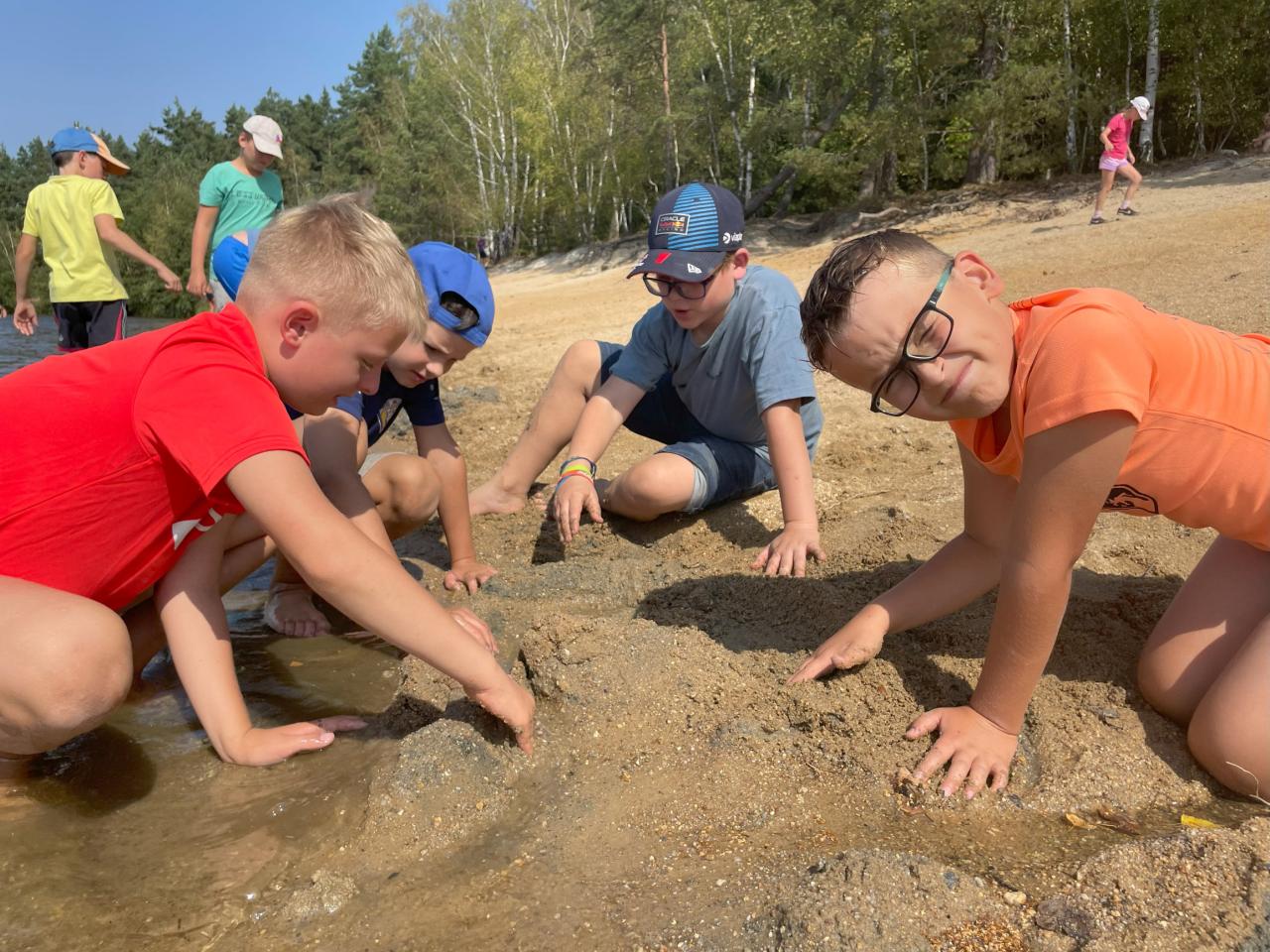 Celý pobyt se nesl ve znamení několika poprvé - někdo jel poprvé vlakem, někdo spal poprvé bez rodičů, někdo Třeboň a její okolí nikdy předtím nenavštívil, ale jedno poprvé měli všichni žáci společné - poprvé strávili čas s novou třídní učitelkou. Mimo objevování přírody a získávání nových informací žáci také utužovali třídní klima, seznamovali se s novou třídní učitelkou a vytvářeli nové zážitky v kolektivu své třídy. Hned první den si žáci na vlastní kůži vyzkoušeli lovení vodních živočichů, pozorování stromů i stavění domečků pro malé lesní tvory. Středeční program zakončila noční procházka kolem Schwarzenberské hrobky, na jejímž konci čekala na všechny sladká odměna za odvahu. Vrcholem celého kurzu byl čtvrteční celodenní výlet na Veselské pískovny, kde jsme se dozvěděli, proč je Třeboň "taková placka” a dokonce jsme se prošli po písečné duně. Nechybělo ani koupání na pískovně a studené občerstvení. Pátek už byl ve znamení balení, uklízení a loučení s Třeboní.
