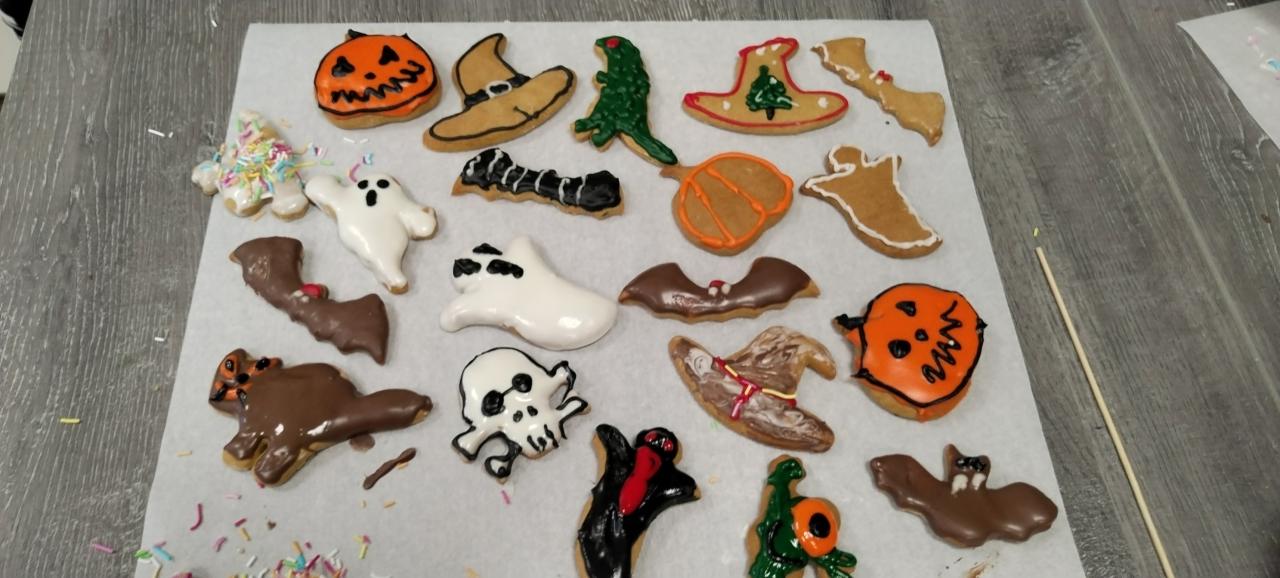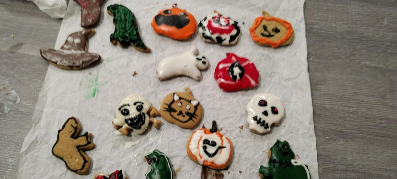 Ema přinesla výborné barevné polevy, které pro nás připravila její maminka – tímto jí moc děkujeme. Díky nim se naše perníčky proměnily v krásné a originální halloweenské výtvory.
