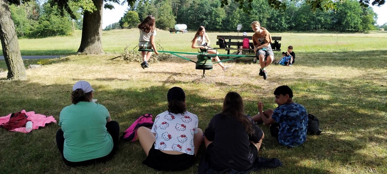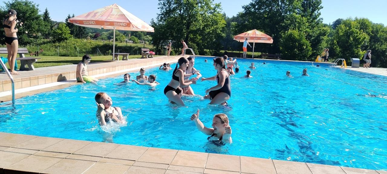 Ve středu zamířili na koupaliště v Milevsku, kde si užili nejen osvěžující koupání, ale i různé sportovní aktivity a hry. Den plný vodních radovánek vystřídal ve čtvrtek výlet do okolí Kovářova. Děti vyrazily pěšky a během cesty si užívaly krásnou přírodu, výhledy i přátelskou atmosféru.