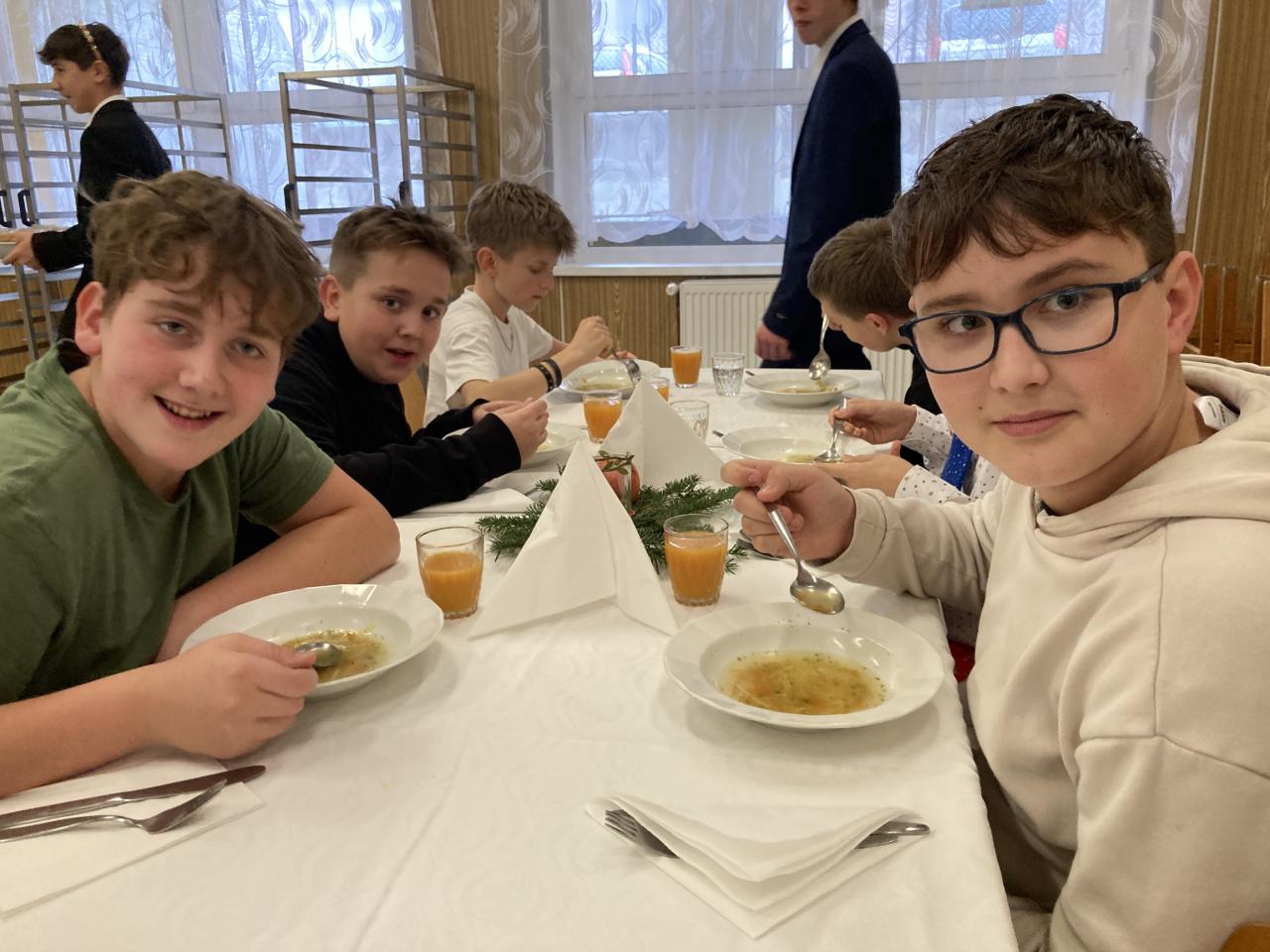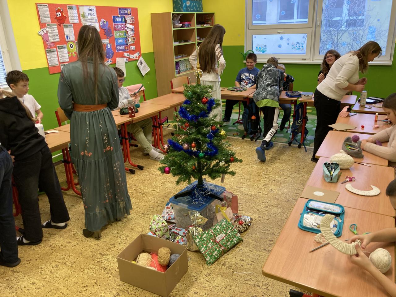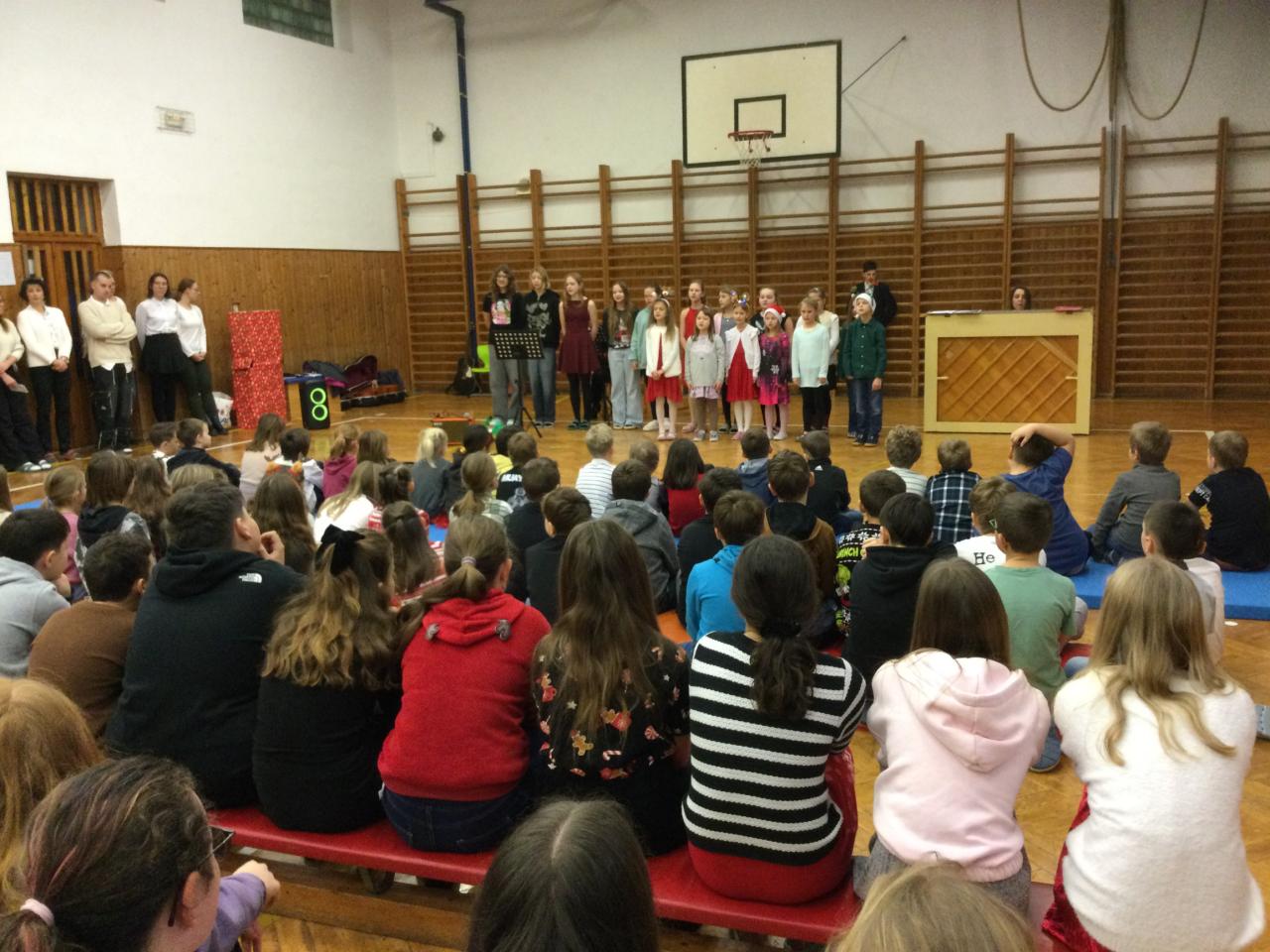 Na úvod nás vánočně naladil pěvecký sbor, po něm následovala vystoupení žáků druhého stupně a poslední píseň zazpívalo tradičně hudebně-učitelské těleso. První hodina společně stráveného času byla vystřídána vánočními dílničkami, na nichž žáci zhotovili drobný výrobek s vánoční tématikou. Nejstarší žáci si tak ocitli v roli pomocníků a asistentů. Další část předvánočního dne se odehrávaly jedinečné programy v každé třídě u stromečku. Celý den byl završen slavnostním obědem, u kterého obsluhovali žáci deváté třídy.