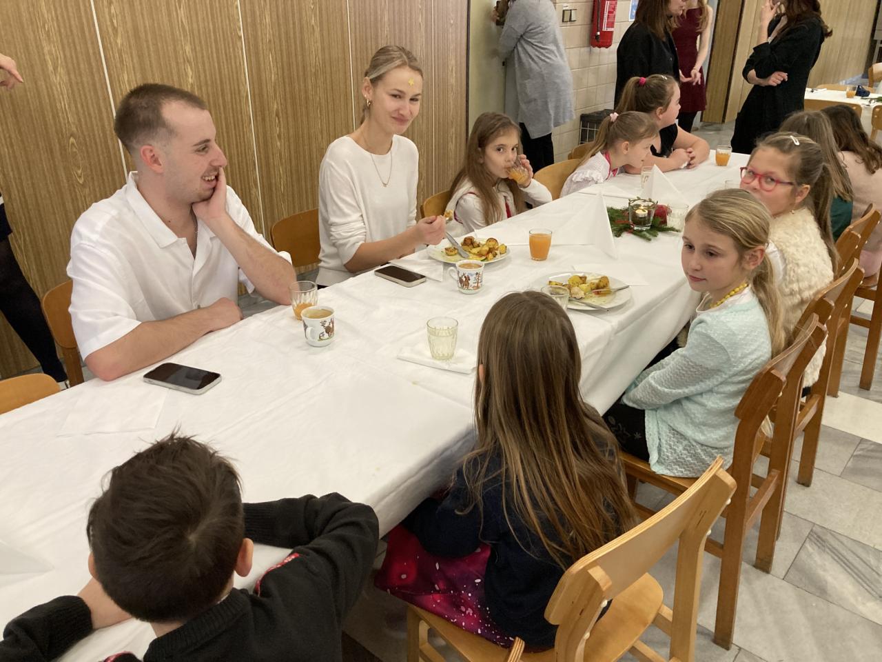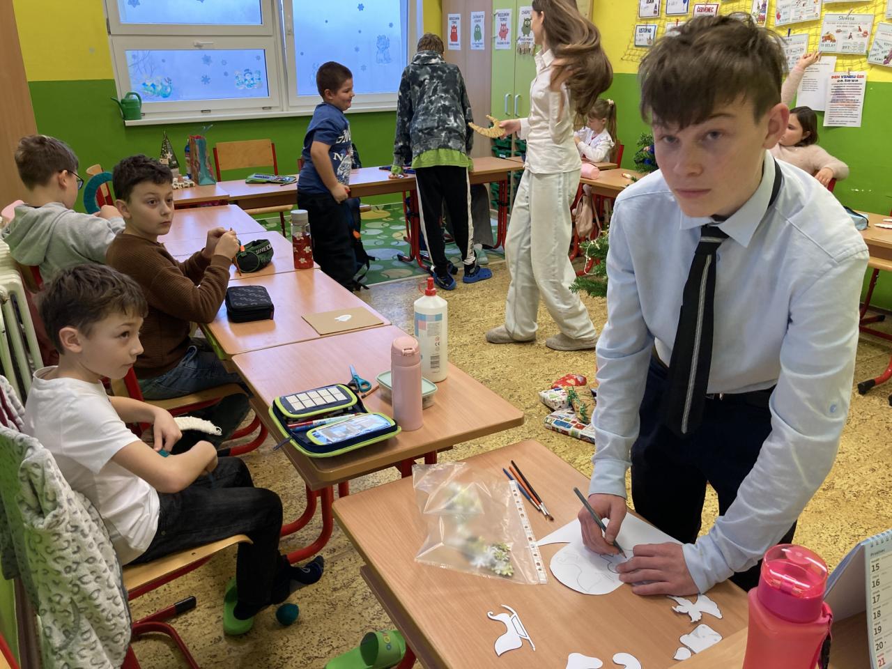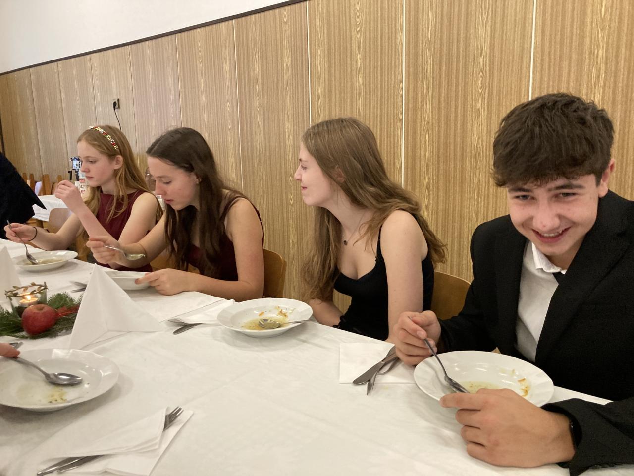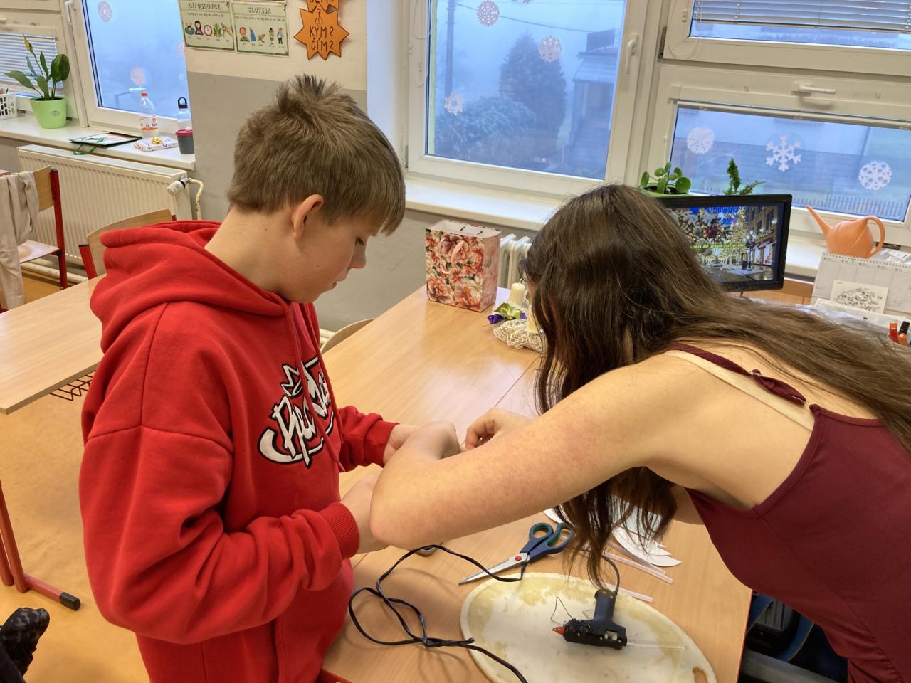 Na úvod nás vánočně naladil pěvecký sbor, po něm následovala vystoupení žáků druhého stupně a poslední píseň zazpívalo tradičně hudebně-učitelské těleso. První hodina společně stráveného času byla vystřídána vánočními dílničkami, na nichž žáci zhotovili drobný výrobek s vánoční tématikou. Nejstarší žáci si tak ocitli v roli pomocníků a asistentů. Další část předvánočního dne se odehrávaly jedinečné programy v každé třídě u stromečku. Celý den byl završen slavnostním obědem, u kterého obsluhovali žáci deváté třídy.