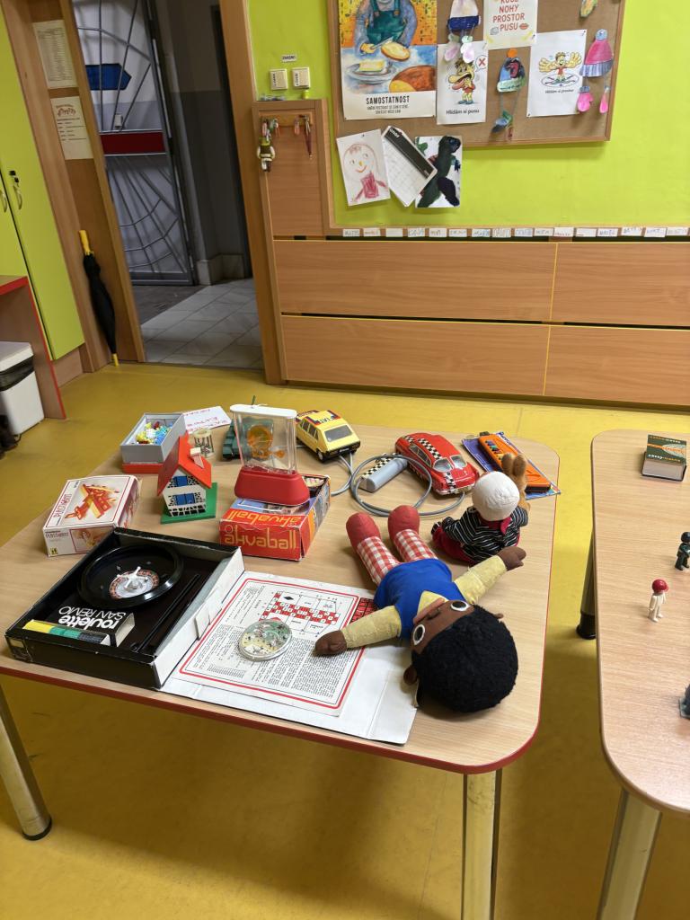 K dispozici tak byly nejen staré stavebnice a hračky, ale třeba i legendární hra Jen počkej, zajíci!. Návštěvníci dále objevovali první počítačové hry, listovali starými školními kronikami i fotografiemi a nahlédli do toho, co kdysi ukrývala poctivá KPZ. Nechyběl mléčný bar, stínové hry ani klasiky jako lodě, přebíraná, cvrnkání kuliček nebo skákání gumy.