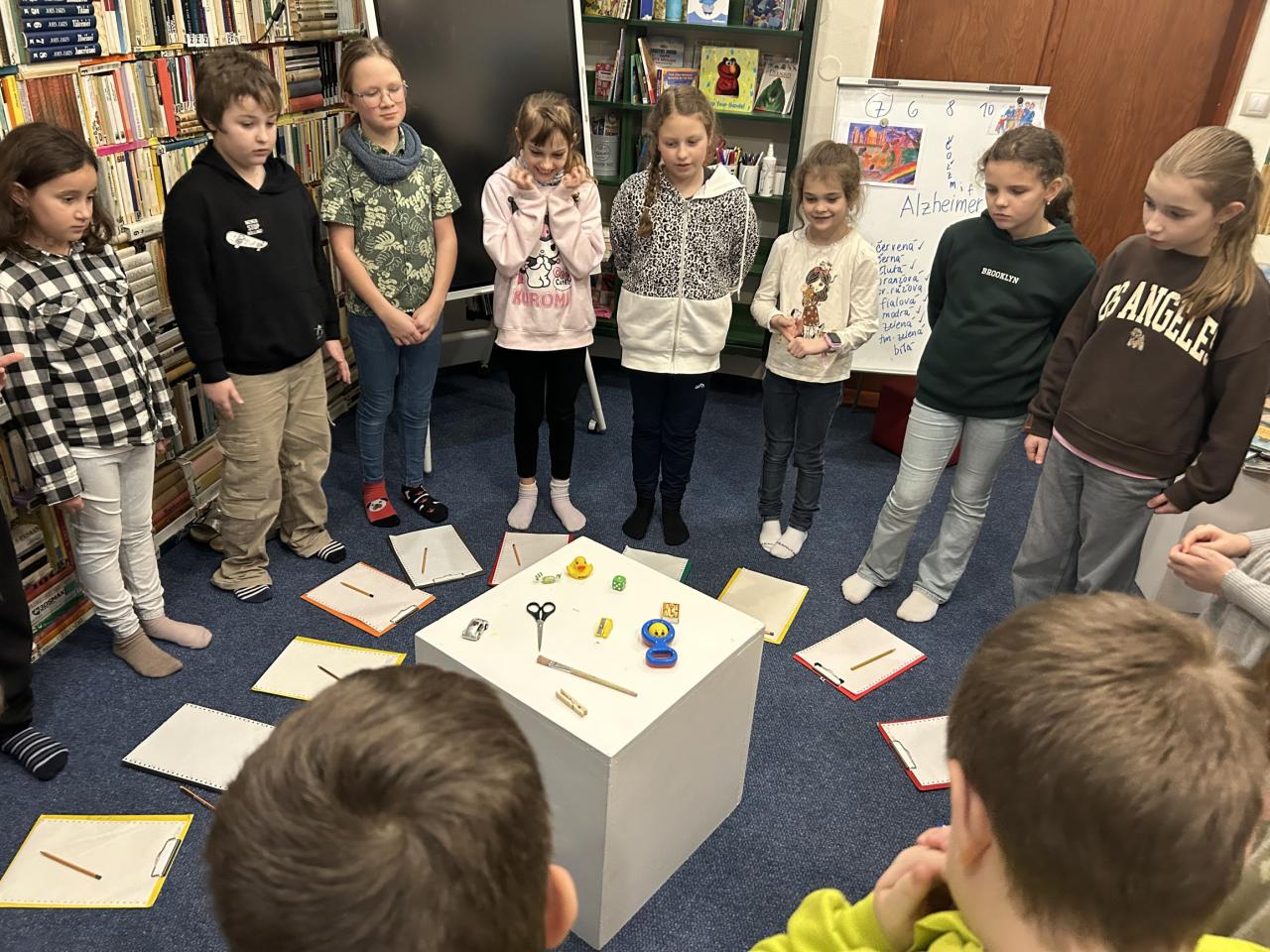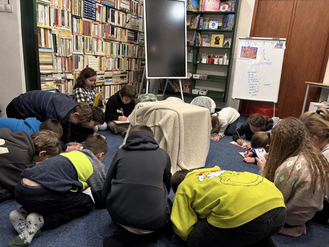 Děti si se zaujetím vyslechly příběh o dědovi, který občas zapomínal, a následně se zapojily do zábavných aktivit zaměřených na paměť a pozornost. Velký úspěch mělo i zapamatování různých předmětů ukrytých pod dekou.